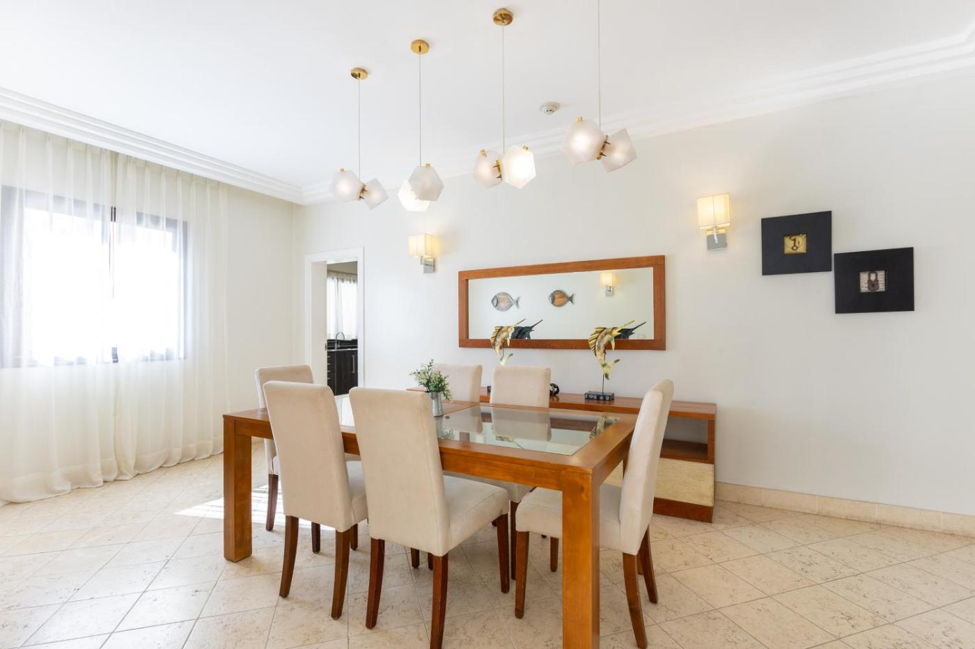 The spacious apartment with a terrace and pool views has 3 bedrooms, a living room, a flat-screen TV, an equipped kitchen with an oven and a microwave, and 3 bathrooms with a walk-in shower. Towels and bed linen are available in the apartment. The property has an outdoor dining area.